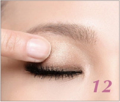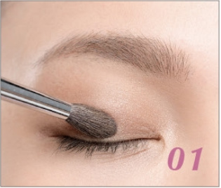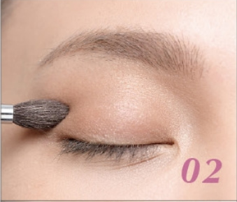 選用接近自己膚色的大地色系眼影,在整個眼皮打亮,先均勻眼皮的顏色,眼影才不顯髒。