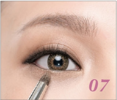 沿著剛劃過的下眼線處,以深咖啡色眼影再疊一次。