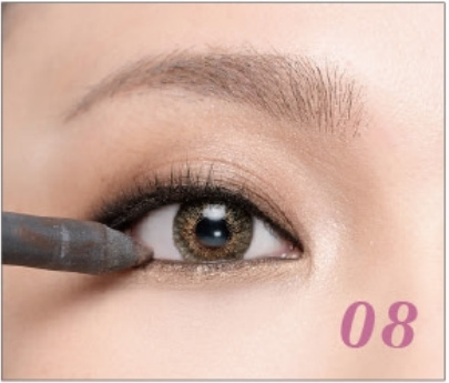 記得,這時候的下眼線用咖啡色畫下眼線,不要用黑色,否則眼神看起來會很兇,距離感會太強烈。