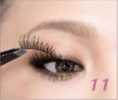 記得選擇「眼尾比較長、眼頭比較短」的假睫毛,才能創造出像貓咪般迷濛放電的感覺喔。
