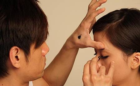 再用一點深色眼影畫在眼頭,就能讓眼睛輪廓看起來更深邃。