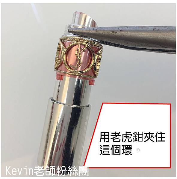 《步驟3》用老虎鉗夾緊圖裡標示處的環,順時針方向把環旋轉下來,這個環就可以鬆脫。
